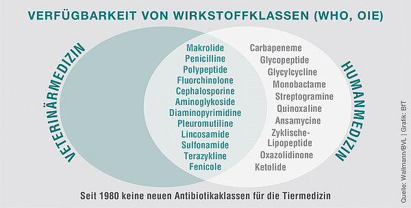 Verschiedene Antibiotikaklassen sind erforderlich, um das ganze Spektrum bakterieller Krankheitserreger bei den einzelnen Tierarten auch künftig effektiv bekämpfen zu können. Dies ist auch wichtig, um Resistenzen zu vermeiden.