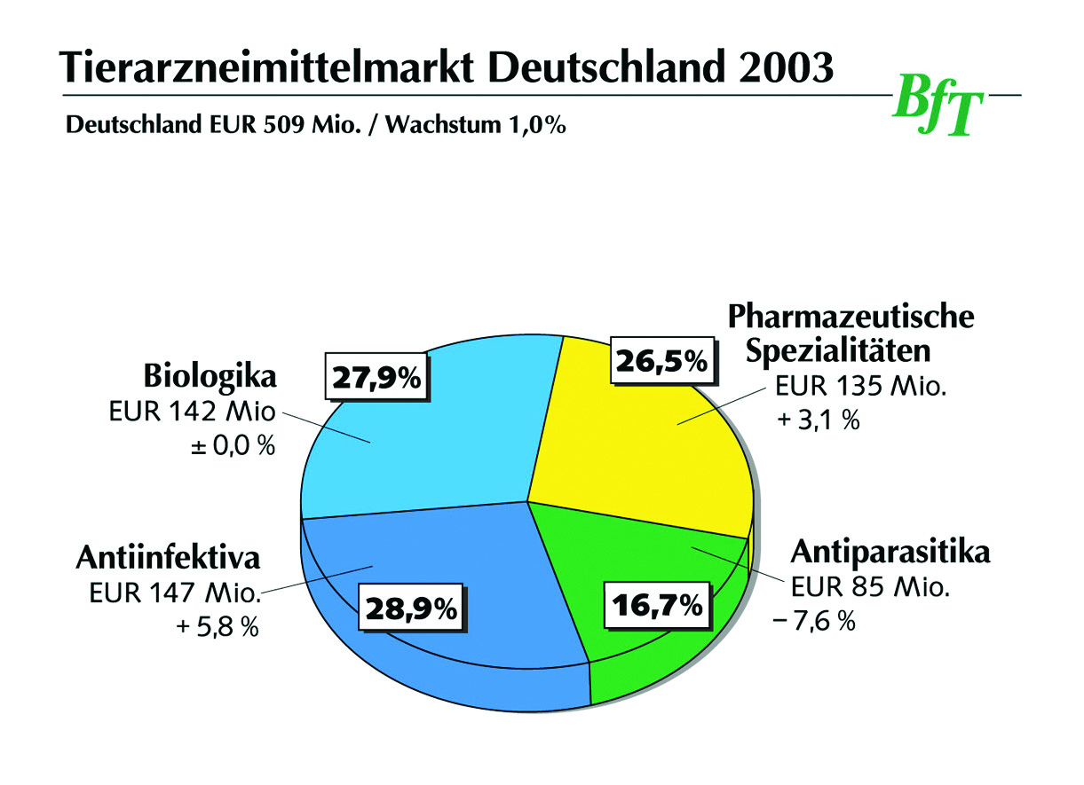 Der Tierarzneimittelmarkt in Deutschland entwickelte sich im Jahr 2003 nur schwach. Das Gesamtwachstum betrug lediglich 1%. Hauptverlierer des vergangenen Jahres war das Antiparasitikasegment. Insbesondere die Gruppe der Endektoparasitika litt unter massivem Preisverfall. Nachdem bei den Kleintieren auch im Floh- und Zeckenbereich die Zuwachsraten der vorherigen Jahre nicht mehr erreicht werden konnten, verzeichnete das Antiparasitikasegment ein Minus von 7,6%.