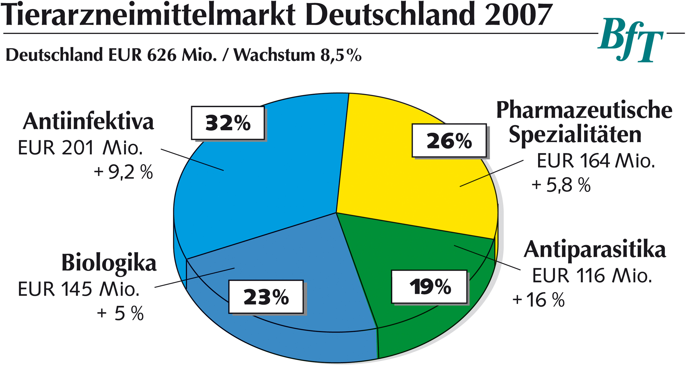 Mit einem Wachstum von 8,5 Prozent entwickelte sich der Tierarzneimittelmarkt in Deutschland im Jahr 2007 sehr gut. Die höchsten Zuwächse zeigten