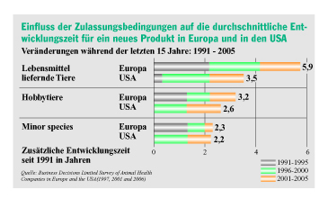 Der steigende technisch-wissenschaftliche Standard erhöht zwangsläufig die Studienzahl, bedingt diffizilere Studien und erfordert eine fachkompetentere Bewertung. Zu einem höheren Entwicklungsaufwand haben aber auch nicht unerheblich steigende behördliche Forderungen zur Risikominimierung beigetragen, die uns im praktizierten Umfang oft nicht gerechtfertigt erscheinen und einer streng wissenschaftlichen Basis entbehren. Dieses gilt nicht nur für die Entwicklung innovativer Tier-arzneimittel, sondern ebenso für Zulassungserweiterungen und den Erhalt bestehender Zulassungen. So entfallen in Europa allein etwa 35 Prozent der Kosten für Forschung und Entwicklung auf den Erhalt der Zulassungen (Maintenance).