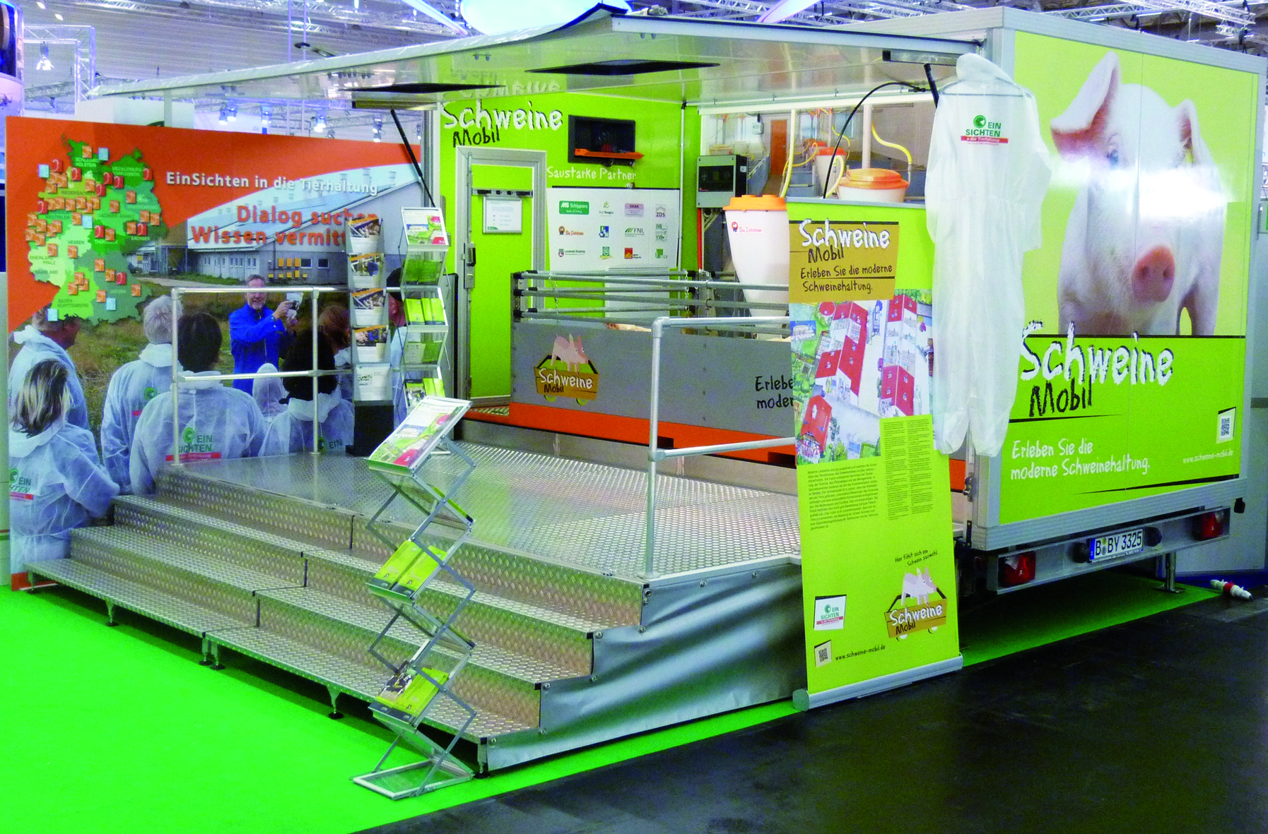 Viele Landwirte nutzen Schweine Mobil und Kuh Mobil, um mit den mobilen Anhängern Verbrauchern moderne Stallhaltung von Mastferkeln und Milchkühen näher zu bringen.