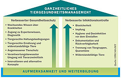 Pünktlich zum Jubiläum hat EPRUMA den Leitfaden aktualisiert und weiterentwickelt. Damit reagiert die Initiative auf die gestiegenen Anforderungen und Erwartungen sowie auf die gewachsenen Erkenntnisse im Zusammenhang mit dem Einsatz von Antibiotika. Das Dokument vereint das umfassende Konzept des verantwortlichen Umgangs mit Antibiotika mit spezifischen Ansätzen, die dazu beitragen sollen, die Tiergesundheit auf den landwirtschaftlichen Betrieben weiter zu optimieren.