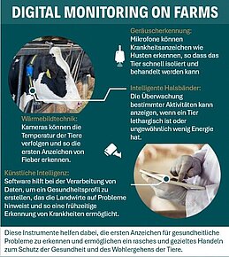 Der umfangreiche Datenpool, insbesondere in der Nutztierhaltung, bietet Chancen im Zusammenwirken der veterinärmedizinischen Praxis, dem öffentlichen Veterinärwesen und der Landwirtschaft, die Gesundheit der Tierbestände zu überwachen und weiter zu verbessern. Mit KI-gestützten Plattformen könne zudem der Zugang zu aktuellen Forschungsergebnissen und Fallstudien ermöglicht werden und die stetige Fortbildung sowie ein kontinuierlicher Wissensaustausch gefördert werden. Bei allem Potenzial und der Vielzahl von KI-Anwendungen liegt es in der Hand des jeweils Verantwortlichen, also Wissenschaftler, Tierarzt oder Unternehmer, wie diese genutzt werden.